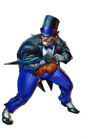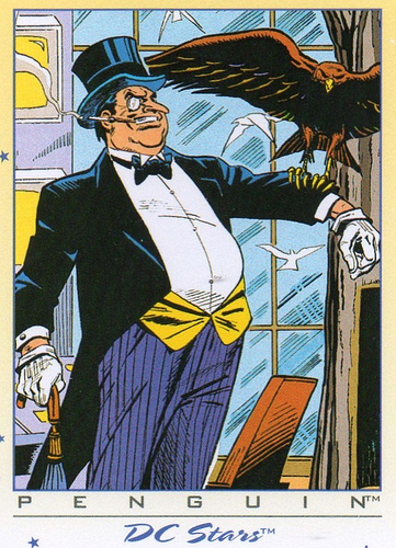 Oswald Chesterfield Cobblepot, É um personagem de baixa estatura, gordo, usa um smoking e um guarda chuva. É conhecido por seu amor as aves e seu guarda chuva, que o ajudam como pára-quedas, esconde uma arma e outras funções. Algumas delas possuem uma metralhadora na ponta, escondem lança-chamas ou provocam explosões. Ademais tem sempre como companhia charmosas mulheres, as quais estão sempre perto dele por causa do seu dinheiro. O Pingüim quando jovem sempre fora desprezado pelo sexo oposto.